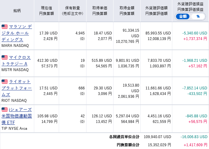そして案の定というか、RIOTがまたMARAを抜いた。やはりシーソーしてるぜこの銘柄達は。こうなると下がった方を買っていくのが無難なのかもしれないなぁ。私は面倒くさくてMARA一転集中しちゃったけど。